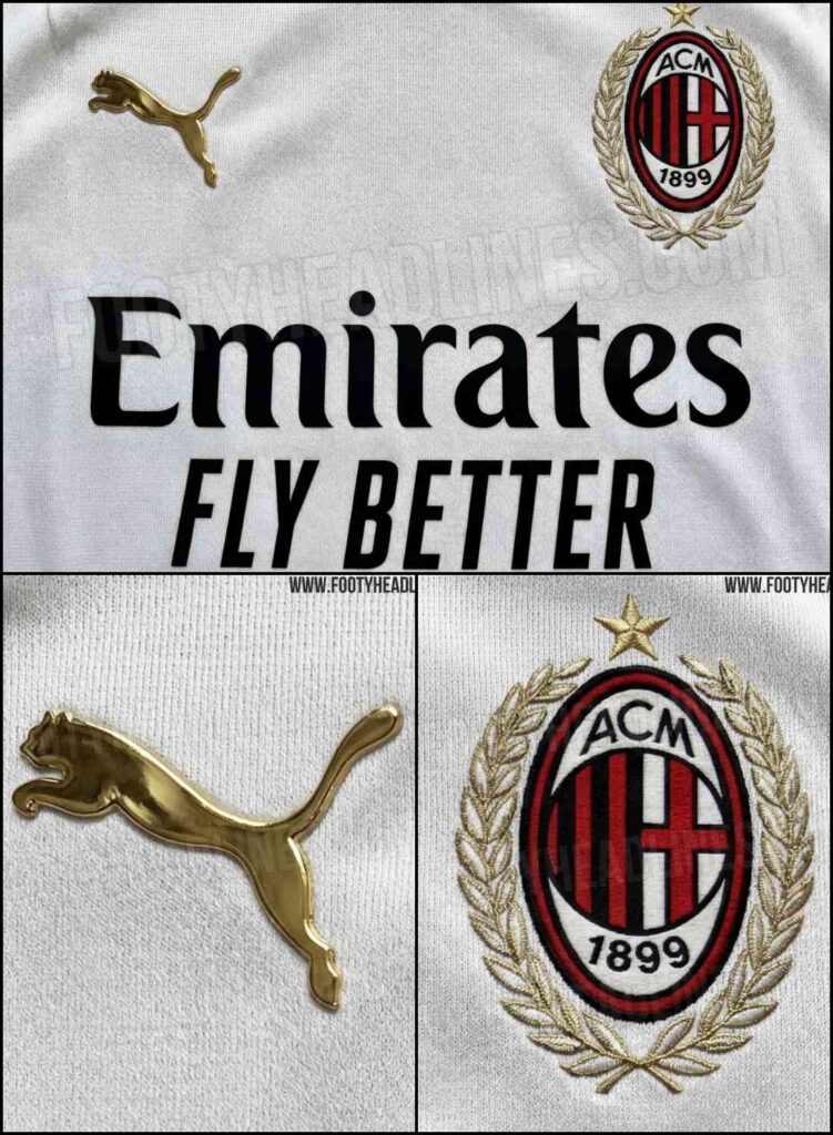 A mezekre specializálódott portál szerint az új idegenbeli mez alapszíne a hagyományoknak megfelelően fehér lesz és arany illetve fekete elemek fognak szerepelni rajta. A kiszivárgott látványtervek alapján a Puma logója arany színű és az Emirates főszponzor felirat fekete színű lesz. A Milan-címer arany babérkoszorúval lesz díszítve minden bizonnyal a San Siro stadion 100. évfordulójának alkalmából.
