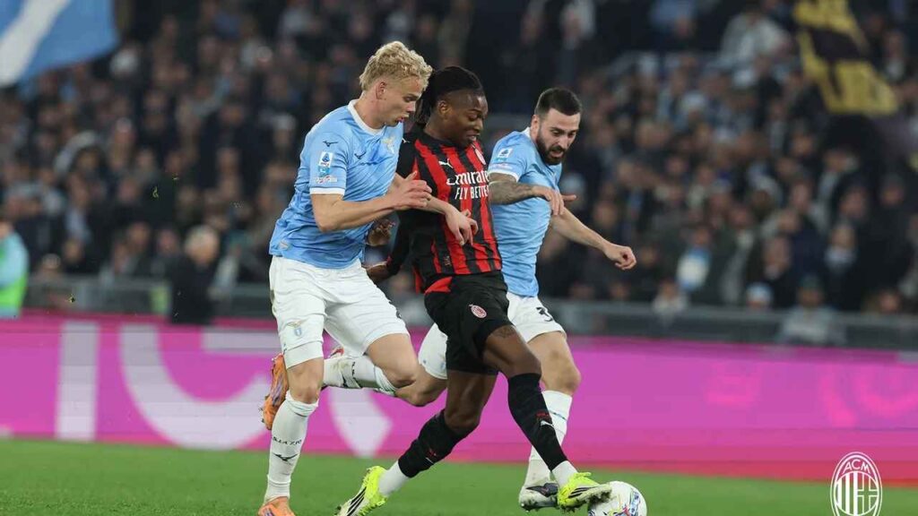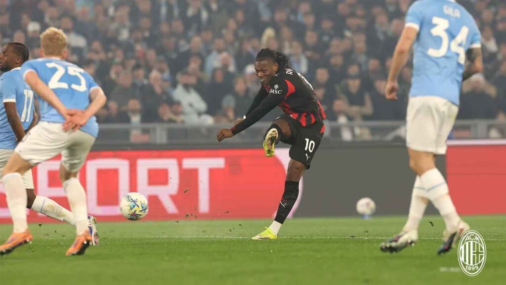 A 26. minutumban a Lazio megszerezte a vezetést az Olimpicóban: Adam Marusic hosszú indításából Gustav Isaksen megindult a szélen és Estupinan elesett, így üresen vezethette a labdát a kapu felé és az alsó sarokba lőtt. Bár Mike Maignan ujjheggyel beleért, de a labda a hálóban kötött ki (1-0). Tíz percre rá egy felívelés után Daniel Maldini egy sprint végén a tizenhatosról laposan lőtt, ám Maignan könnyedén védte a próbálkozását.